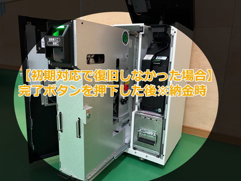 なお、本作業は完了ボタンを押下した後(納金動作中)に不具合が発生している場合を対象としたサポート手順です。